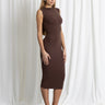 Il girocollo pulito e la spalla leggermente strutturata donano un tocco contemporaneo e raffinato, creando un equilibrio perfetto tra minimalismo e femminilità. La lunghezza midi allunga visivamente la figura e rende l’abito estremamente versatile.