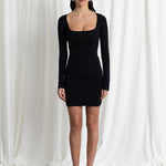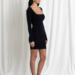 MINI DRESS SCOLLO NOIR. Elegante e versatile, questo mini dress in MICROFIBRA di altissima qualità ultra-morbida avvolge le forme con una vestibilità aderente e confortevole. Lo scollo quadrato esalta la linea del décolleté, mentre le maniche lunghe aggiungono un tocco raffinato e perfetto per ogni stagione.