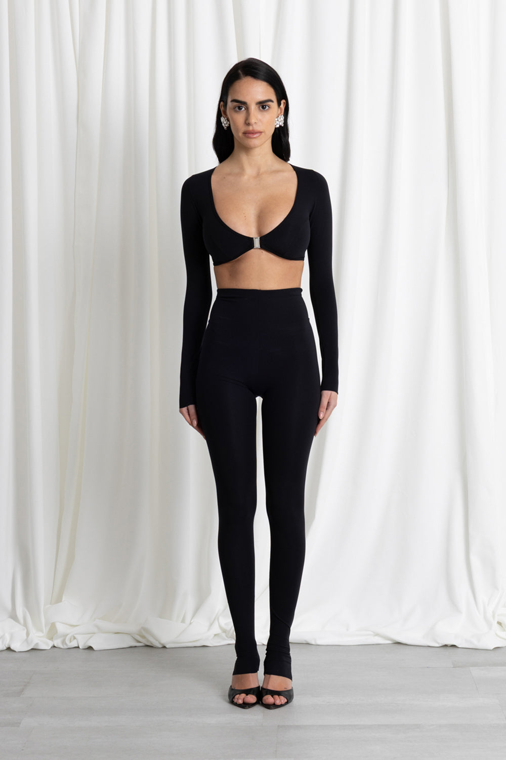 TOP CLIP NOIR MICROFIBRA. Scopri il nostro Top in MICROFIBRA di altissima qualità, realizzato con passione in Italia. È un crop top a maniche lunghe.  Il crop top presenta un'elegante clip centrale in zama che aggiunge un tocco di stile distintivo e moderno. È adatto a molteplici occasioni, perfetto per una serata elegante o per un'uscita informale con un tocco di classe. Scegli la qualità italiana e lasciati avvolgere dalla bellezza di un design contemporaneo e sofisticato!