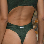 LOVE is the new one-piece among the most glamorous models of summer 2024 in high quality glitter microfibre. The deep neckline and draping under the breast are designed to enhance the décolleté.