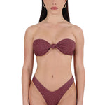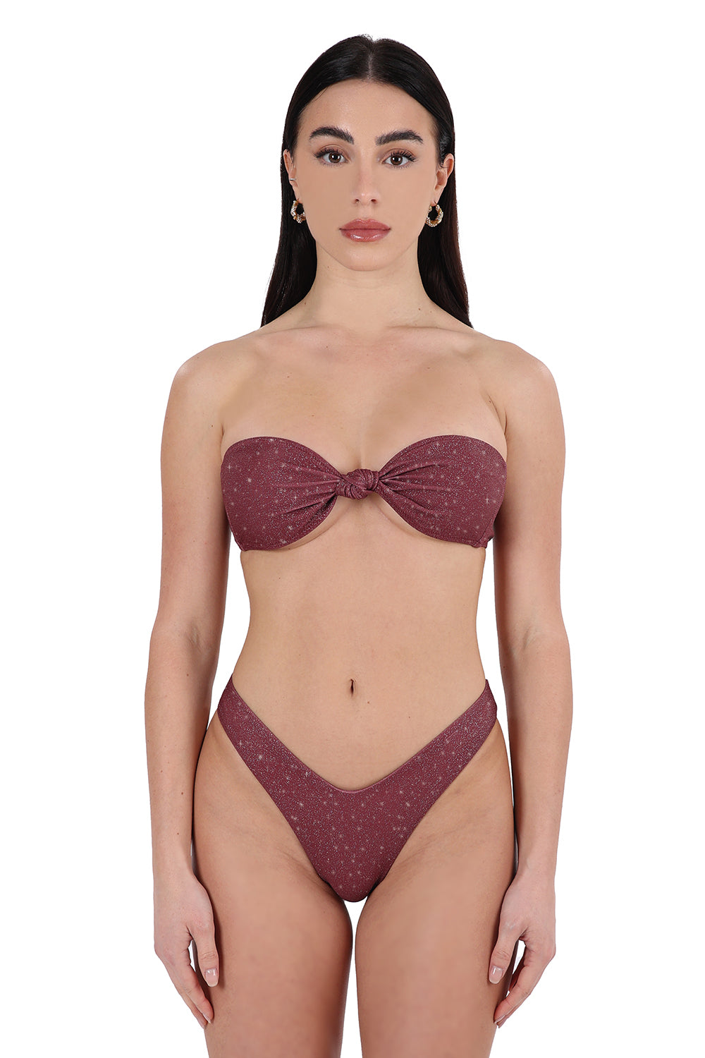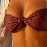 The knot in the center of the breast gives harmony to the neckline. The back closure is embellished with a hypoallergenic zama hook.