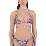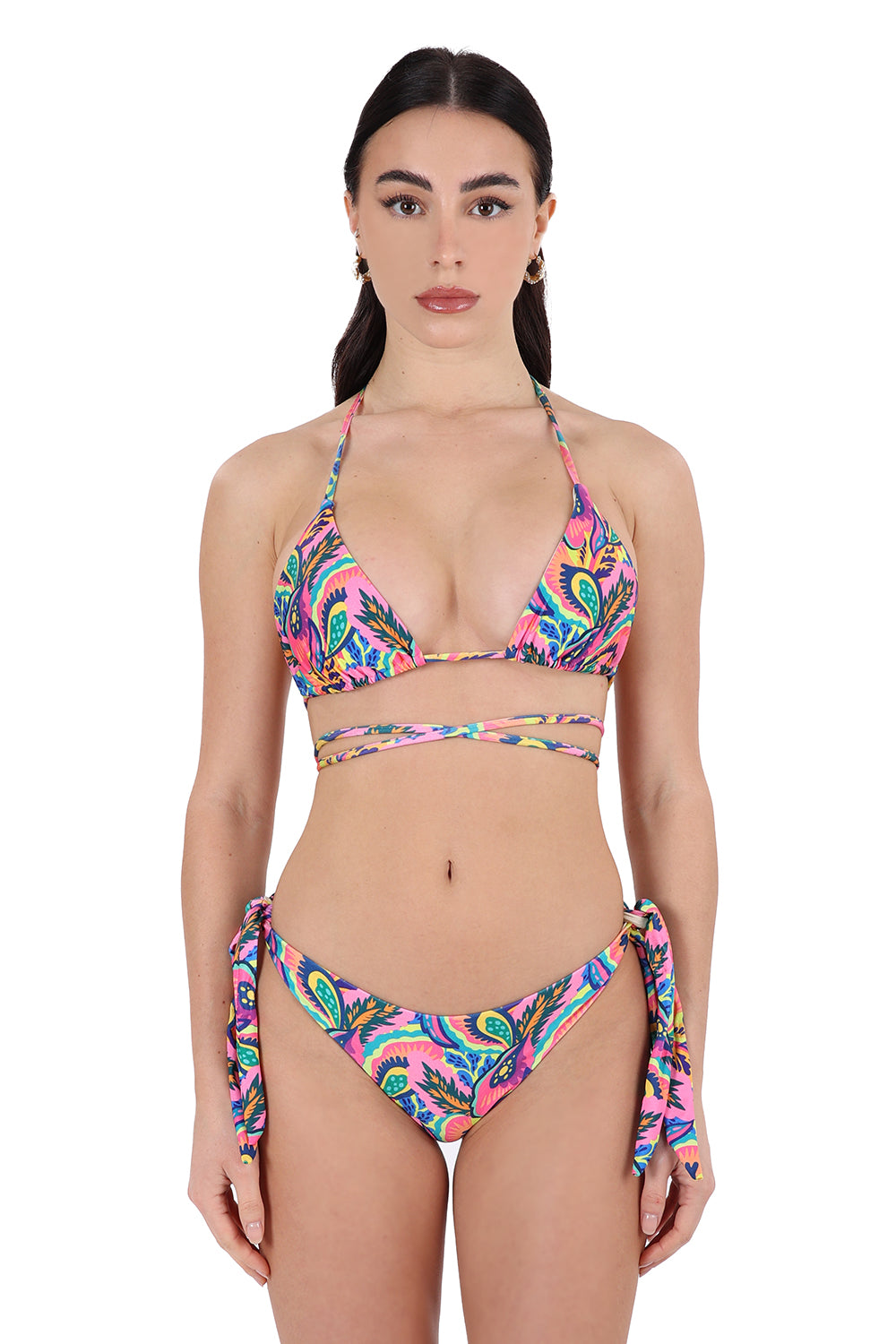 SALLY is the braided triangle in top quality Lycra that adapts perfectly to the breast thanks to the sliding drawstring.