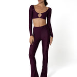 LOGO TOP AND FLARE LEGGINGS COMPLETE. Our Lycra set made in Italy is a perfect combination of style and comfort. The high-waisted flare leggings hug the curves with an impeccable fit, lengthening the silhouette and ensuring excellent freedom of movement. The long-sleeved crop top has a neckline on the breast embellished with the distinctive Sontèn logo that adds a touch of refinement. This set is ideal for those looking for a versatile look. Choose Italian quality and highlight your personality with a modern and captivating design!