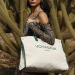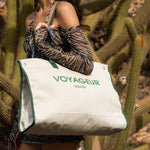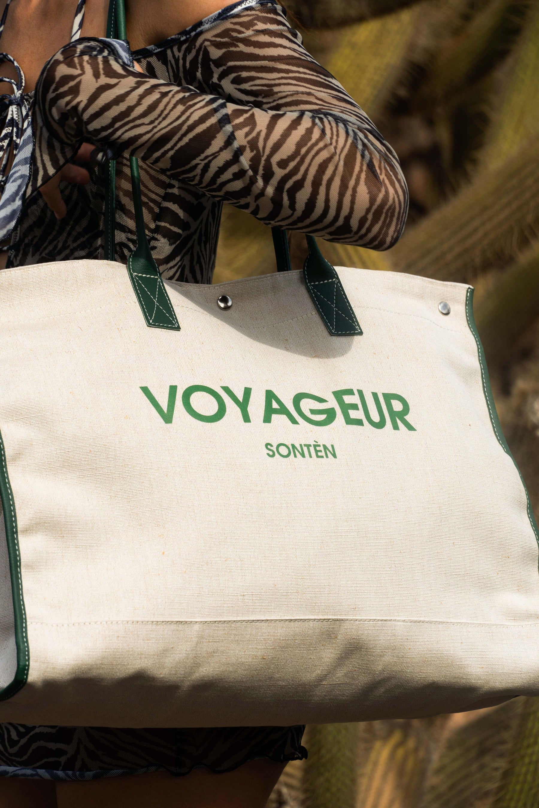 The Sontèn bag is roomy and super glam for going to the beach. It is made of canvas with zip closure and internal pocket.