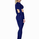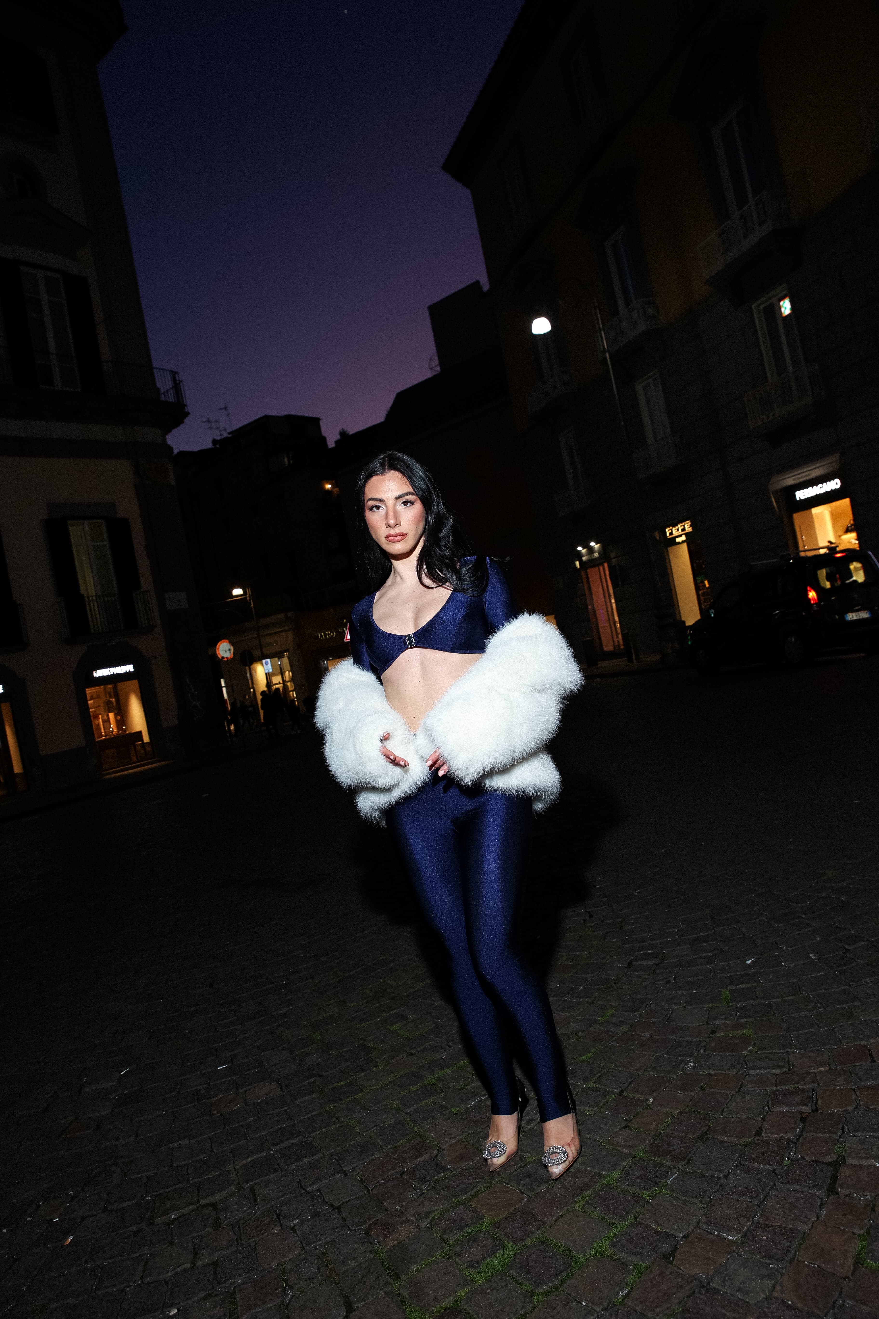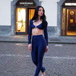 COMPLETO TOP CLIP E LEGGINGS. Scopri il nostro completo in lycra, realizzato con passione in Italia, composto da leggings a vita alta e un crop top a maniche lunghe. I leggings abbracciano perfettamente la silhouette, offrendo una vestibilità comoda e slanciante, mentre la vita alta garantisce sostegno e comfort. Il crop top presenta un'elegante abbottonatura centrale in metallo, che aggiunge un tocco di stile distintivo e moderno. Questo completo è versatile e adatto a molteplici occasioni, perfetto per una giornata rilassante o per un'uscita informale con un tocco di classe. Scegli la qualità italiana e lasciati avvolgere dalla bellezza di un design contemporaneo e sofisticato!
